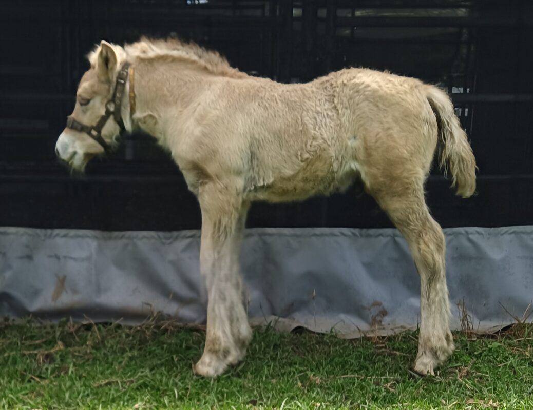 Verner was born 06.11.2025 and has been seen by the farrier from birth to ensure he’s started off on the right footing. He is learning to lead and will be taught to tie up, float load and have baths prior to leaving us. He will be gelded as soon as he completes his tetanus/strangles vaccinations in early March and is scheduled to commence weaning in May 2026, after which he will be available to his new home